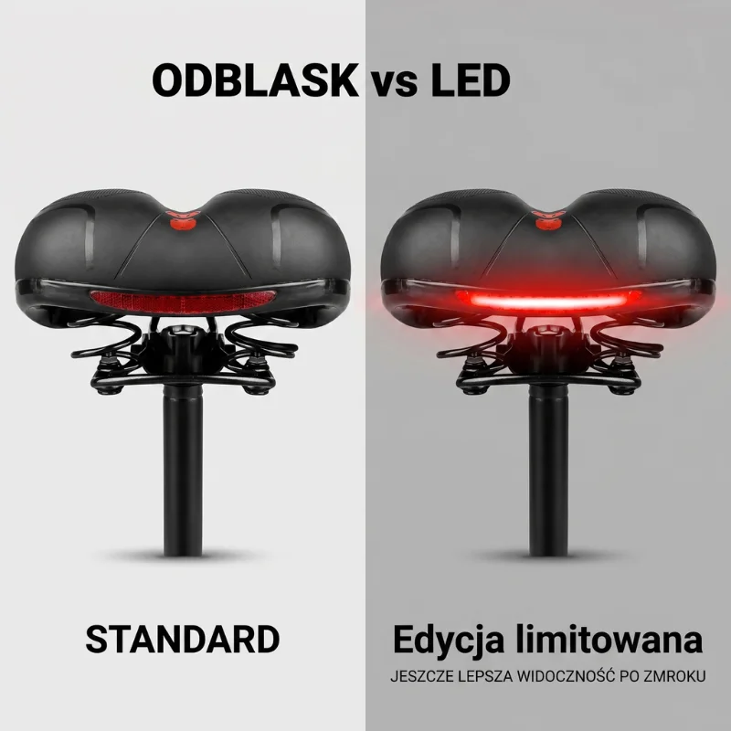 Zakupiony dla dziewczyny egzemplarz, musiałem zwrócić, gdyż nie pasował jej wizualnie do jej górala. O siodełku tym po wstępnych testach powiem tylko tyle, że jest to najbardziej miękkie i wygodne siodełko, jakie miałem w rękach z tego przedziału cenowego. Nie miałem też żadnych istotnych zastrzeżeń co do jakości wykonania i użytych materiałów. Znajdująca się w zestawie lampka świeci bardzo dobrze. Nie polecam jednak używania niebieskiego światła. Lepiej nie zwracać na siebie uwagi. Z uwagi na stosunek jakości do ceny, jako siodełko do roweru miejskiego lub trekkingowego, oceniam je wysoko i polecam.